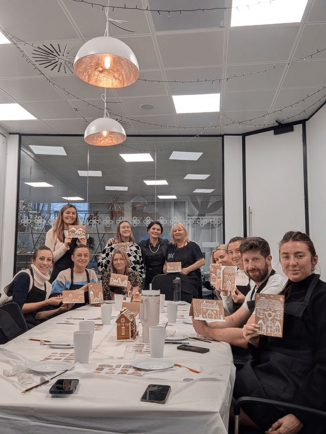 It’s that time of year again! And Mariya Myronova’s “Masterclasses at Lunch” came back with a festive twist. The staff at Stobbs office had a great team-building exercise, as they picked up their paintbrushes to create gingerbread-themed Christmas cards