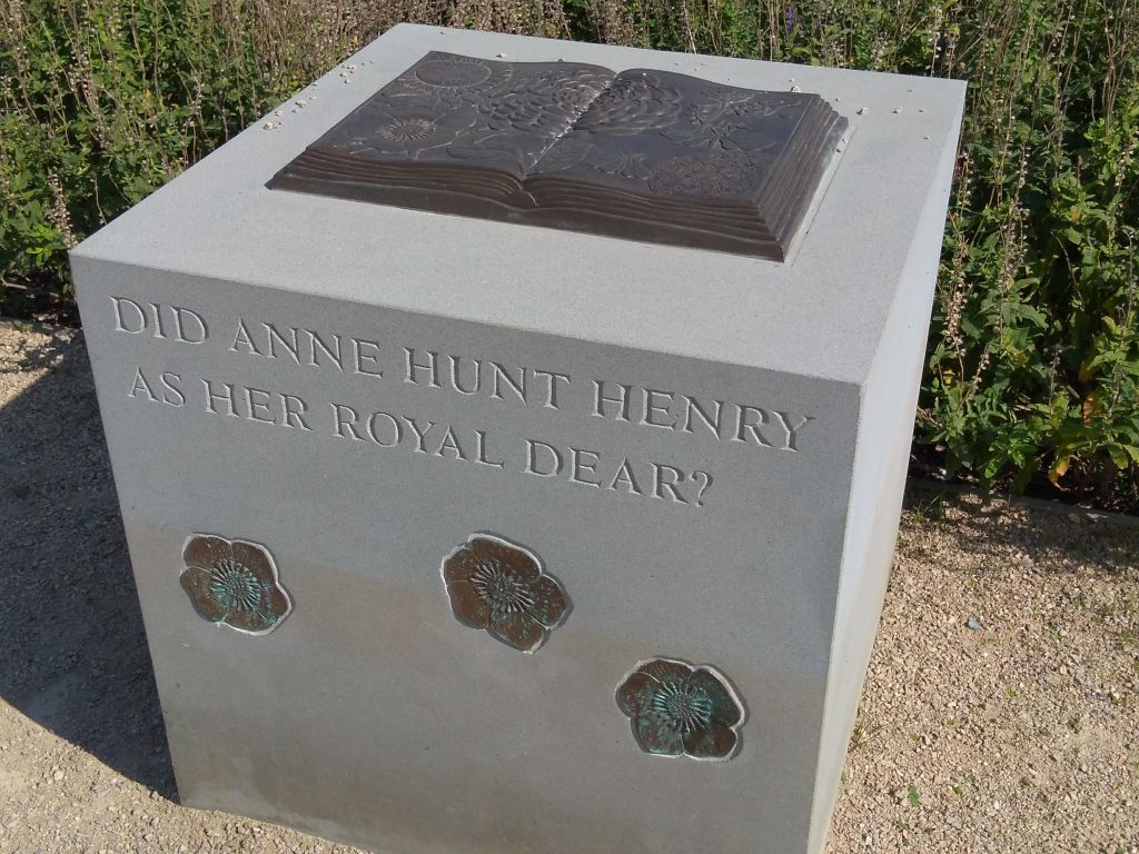 During the time of Henry VIII’s courtship of Anne Boleyn, they are known to have spent time at the tudor palace, now New Hall School. The library of King Henry held 37 books, which David has used as the concept behind a series of bronzes. Each bronze ‘book’ lies open at a page as if someone had just set it down onto a stone. The imagined books celebrate the character of the park, forming a trail of books cast in bronze with low relief, illustrating imagery from the tudor world. The images for each ‘book’ were created as part of a series of workshops with children from the local primary school. Each cube of stone acts as a series of perch seats along the linear path with a line of poetry cut into the vertical surface.