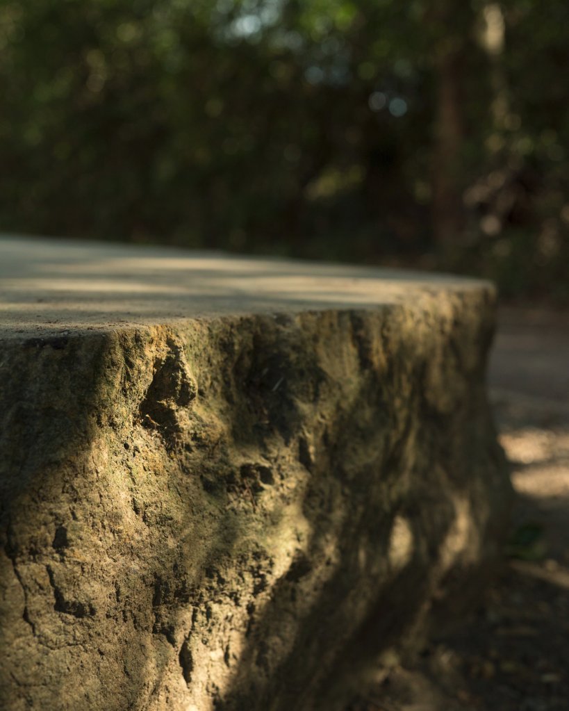There are eight rocks; one group of five and three stand alone stones. They could be the remaining fragments of a larger structure or simply a craggy reminder of the previous inhabitants of this new settlement. The stand alone stones are placed to create perch seats along paths. The group of five stones are placed to suggest the continental drift, the geology of ages illustrated in the sedimentary layers visible through the sides of each stone.