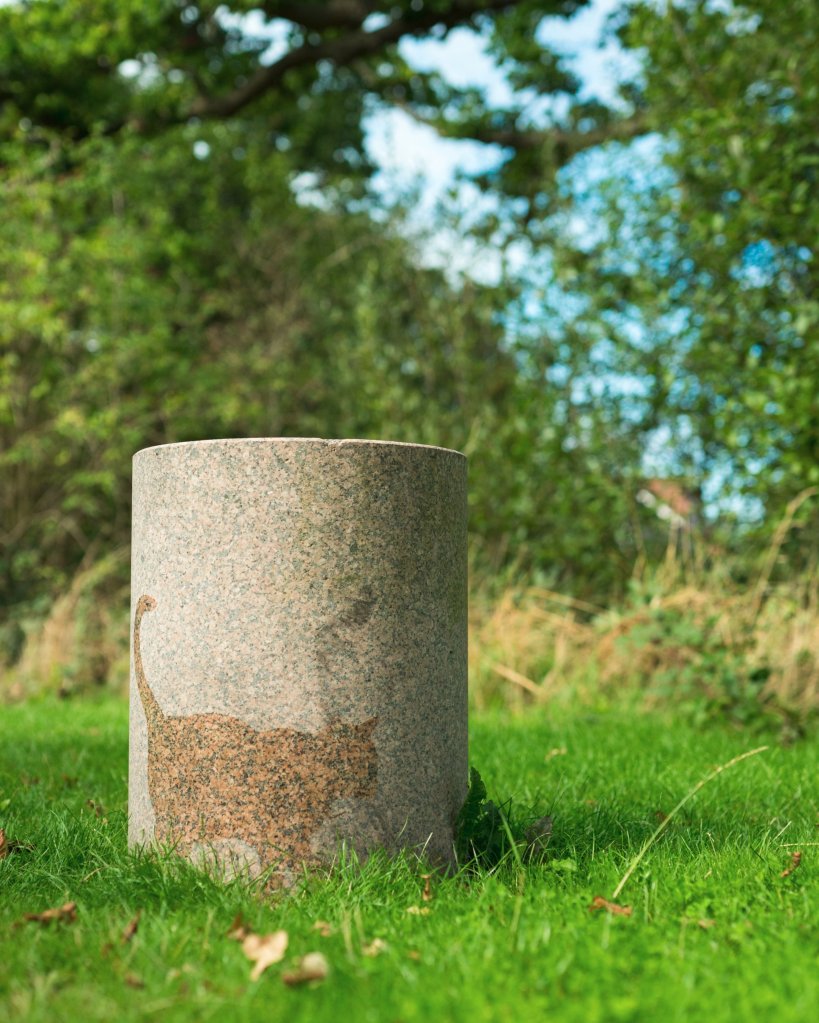 The granite columns were originally salvaged from the church of St. Marks when it was demolished in the late 1980’s. The columns were made available by Horsham District Council and now have decorative images and patterns drawn from local history etched onto their surface. These images are revealed as the light changes or when the surface is wet from the rain. Over time as mosses and lichens slowly colonize the roughened surface of the columns the polished areas will remain clear revealing the images more obviously.